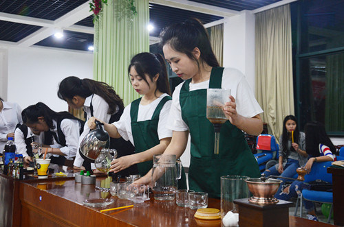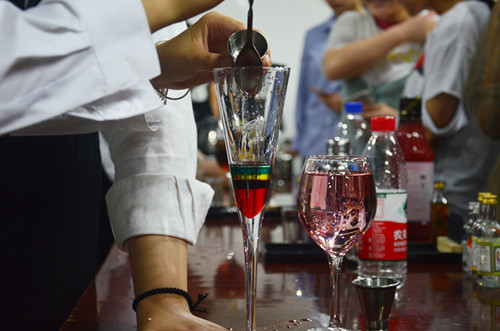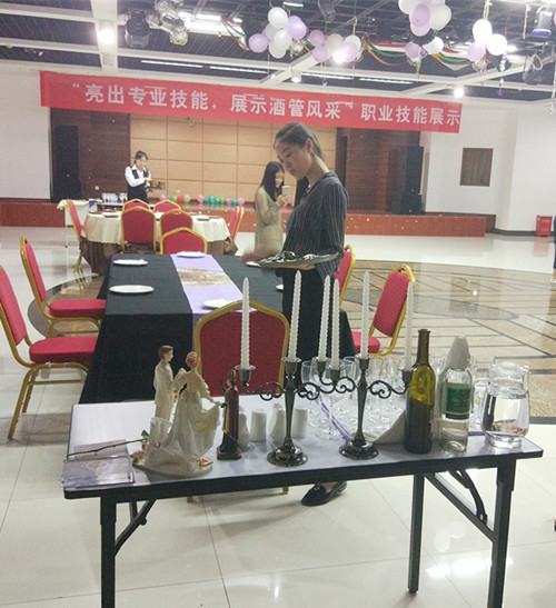 在调酒展示中,学生沉着稳重、专注细致、姿态优美,调制出一杯杯色彩斑斓、个性独特的鸡尾酒;中餐摆台则由两位同学在规定的时间内将铺桌布、餐碟定位、餐具摆放、折餐巾花等流程向大家一一展示;在咖啡制作环节中,学生展示了一杯咖啡的制作全过程,并手把手地指导大一的学弟学妹们研磨咖啡豆、萃取,制作出一杯美味的咖啡。负责西餐宴会服务展示的学生凭借娴熟的操作、精湛的技术赢得了一致喝彩;参与展示的同学还演示了站姿、走姿、坐姿、迎接、微笑、引领、问候等酒店礼节礼貌。 专业技能展示活动是酒店管理专业深化教学改革,狠抓内涵建设,检验教学成果的一次尝试和探索,也为酒管专业培养技能型专门人才奠定了基础。