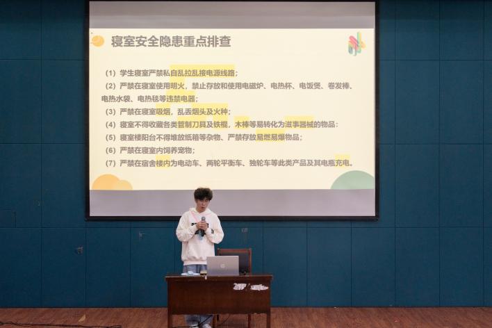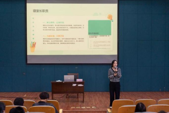 10月23日,创意设计学院在图书馆报告厅召开2025级全体寝室长、生活委员会议,学院有关领导、辅导员参加会议。 学院党总支副书记裘永晓向全体寝室长表示感谢。他指出,寝室长作为寝室建设的“领头雁”,是凝聚寝室合力、夯实集体根基的关键力量,要切实扛起岗位职责。他勉励寝室长抓实日常管理、安全巡查、氛围营造等工作,在协调内部关系、化解矛盾纠纷、凝聚集体向心力中主动作为。他强调,寝室星级是评奖评优、入党推荐的重要依据,希望全体同学珍视集体荣誉,共筑积极健康的居住氛围。 生活部副负责人陈意翔就寝室规章制度进行系统介绍,内容涵盖内务整理、环境卫生与用电安全等方面。检查标准中明确禁止使用大功率电器、私自饲养宠物、乱拉电线等行为,他呼吁全体同学自觉遵守,共同维护和谐的寝室环境。 公寓辅导员张会敏对《创意设计学院宿舍长管理准则》作了详细解读,具体阐释了寝室长与生活委员的工作职责及相关激励措施。她结合真实案例勉励学生干部:不做旁观者,争当主心骨,用智慧打造有凝聚力的小家;不满足过得去,要追求高质量,用勤劳营造整洁的宿舍环境;不放松安全警惕,要防患于未然,用责任与担当守牢安全底线。 心理辅导员陈孝凡作《从心出发,为爱同行》主题培训,着重提出四点要求:一要主动担当,在日常关注中发现异常及时报告;二要将生命安全置于保密原则之上,不独自承担风险;三要熟悉校内心理支持渠道,引导有需要的同学寻求专业帮助;四要学习识别心理危机信号,提升应急处理能力。此外,她强调要共同践行“人人都是心理气象员”的理念,以关怀与陪伴营造互助支持的宿舍家园。 此次会议通过政策解读与案例剖析,既深化了寝室长对岗位职责的认知,也强化了其作为基层治理核心角色的使命感。有效构建起“学校-学院-班级-寝室”四级联动的安全管理与心理支持网络,将育人阵地真正延伸至学生生活的最小单元,为筑牢校园安全底线、培育社区文化提供了坚实保障。