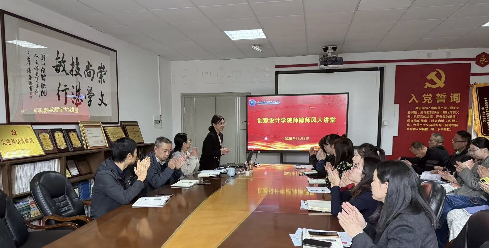为深入贯彻落实立德树人根本任务,弘扬教育家精神,进一步加强教师队伍师德师风建设,11月4日下午,创意设计学院邀请杭州职业技术大学人事处处长、国家课程思政教学名师龙艳教授开展“创新体制机制——打造高水平教师创新团队”高职院校师德师风建设专题讲座。 龙艳结合当前高职院校教师队伍建设现状,强调师德师风是教师队伍的灵魂,更是高水平教师创新团队建设的核心支撑,以高尚师德为纽带,实现“抱团取暖”到“抱团生火”的转变,打造教学、科研、社会服务、竞赛指导多功能一体化团队。讲座内容围绕师德师风建设如何融入团队管理全过程展开,通过“人人进团队”“教师身份1+N”“固定+灵活”等团队组建模式,让师德规范在团队协作中落地生根;以“产教融合”“校企融合”“科教融合”“专创融合”为抓手,以身作则传递工匠精神和职业素养,将责任担当转化为师德实践的生动教材。 现场互动环节,教职工围绕团队协作中的师德养成等问题展开热烈讨论,纷纷表示要以实际行动践行师德规范。 此次师德师风专题讲座的举办,进一步明确了新时代高职院校教师的责任与使命,为学院教师队伍建设与师德师风长效机制构建奠定了坚实基础。学院将通过制度化保障与数字化赋能,推动师德师风建设与教师创新团队发展深度融合,引导全体教师以高尚师德、精湛业务培育更多高素质技术技能人才,为职业教育高质量发展贡献力量。