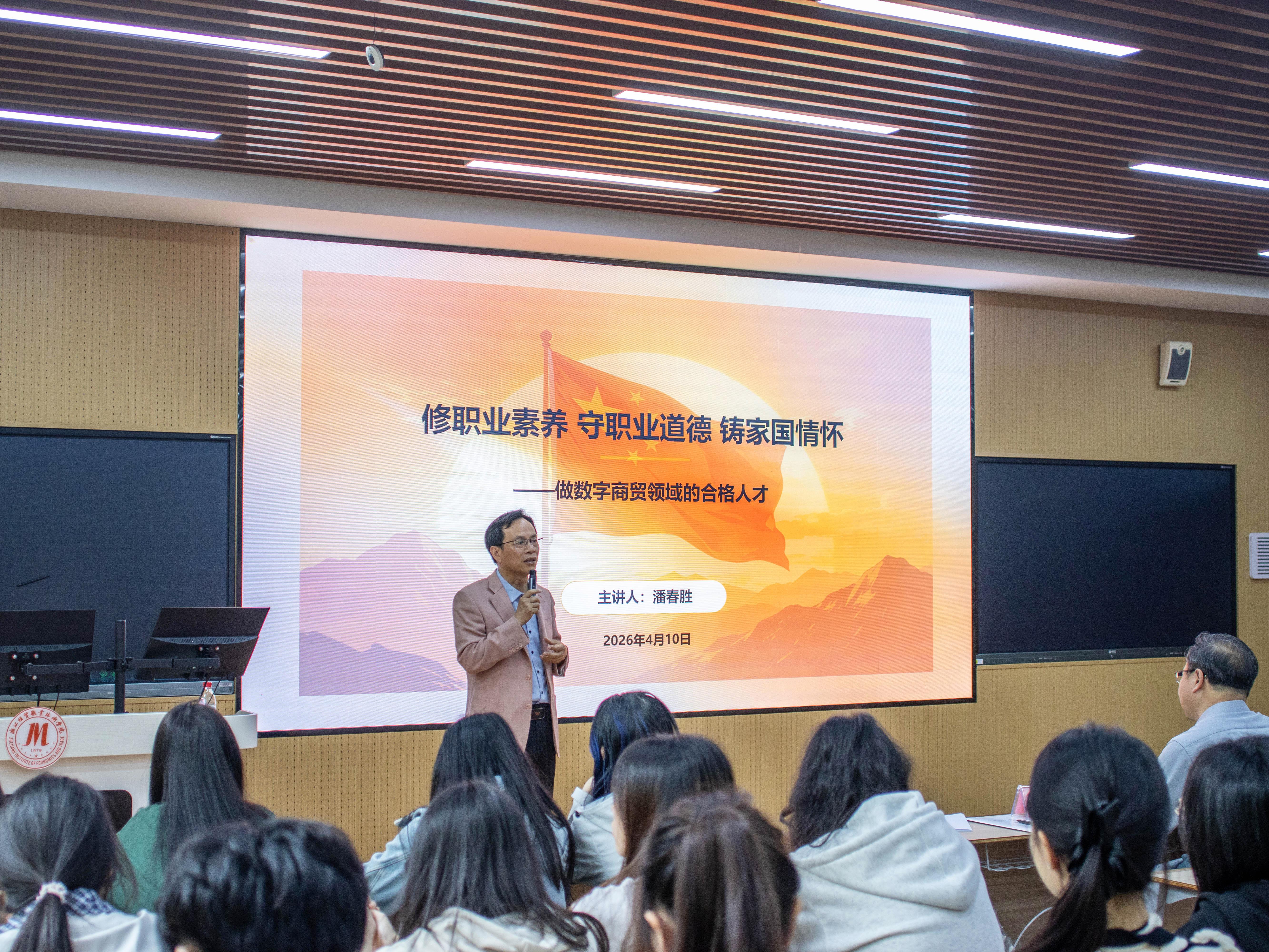 4月10日,创意设计学院关工委特邀学校退休教师、人文旅游系原主任潘春胜教授作“修职业素养守职业道德铸家国情怀——做数字商贸领域的合格人才”专题宣讲。学校关工委、创意设计学院相关负责人及80余名青年师生参加活动。 潘春胜围绕“修职业素养:筑牢数字商贸人才的立身之本”“守职业道德:坚守数字商贸人才的成事之基”“铸家国情怀:扛起数字商贸人才的时代担当”三大核心内容,诠释了新时代数字商贸人才所应具备的素养。他结合本校校友周信静的成长逆袭故事、胡庆余堂的“戒欺”传承、陈嘉庚的家国担当等众多鲜活案例,深入浅出地阐述了专业技能锤炼、诚信底线坚守、社会责任担当与青年时代使命的内在关联。他勉励在场师生牢记“厚德崇商”校训,深耕专业、坚守本心、勇担使命,努力成长为有品德、懂专业、有担当的新时代经贸青年。 活动期间,校关工委办公室主任、工会副主席王季为潘老师颁发学校关工委“‘五老’师资库”聘任证书。潘春胜与创意设计学院两名青年教师签订“银绿携手”师徒结对协议,以“传帮带”模式为青年教师成长搭建阶梯。 此次“五老”专题宣讲活动,既是创意设计学院深化“五老”育人工作的重要实践,也是该院本年度第五期人文大讲堂内容。活动融个人素养指引、职业道德教育、家国担当精神传承于一体,深化了师生对数字商贸人才素养的认知,为学院高素质技术技能人才培育注入了新动力。