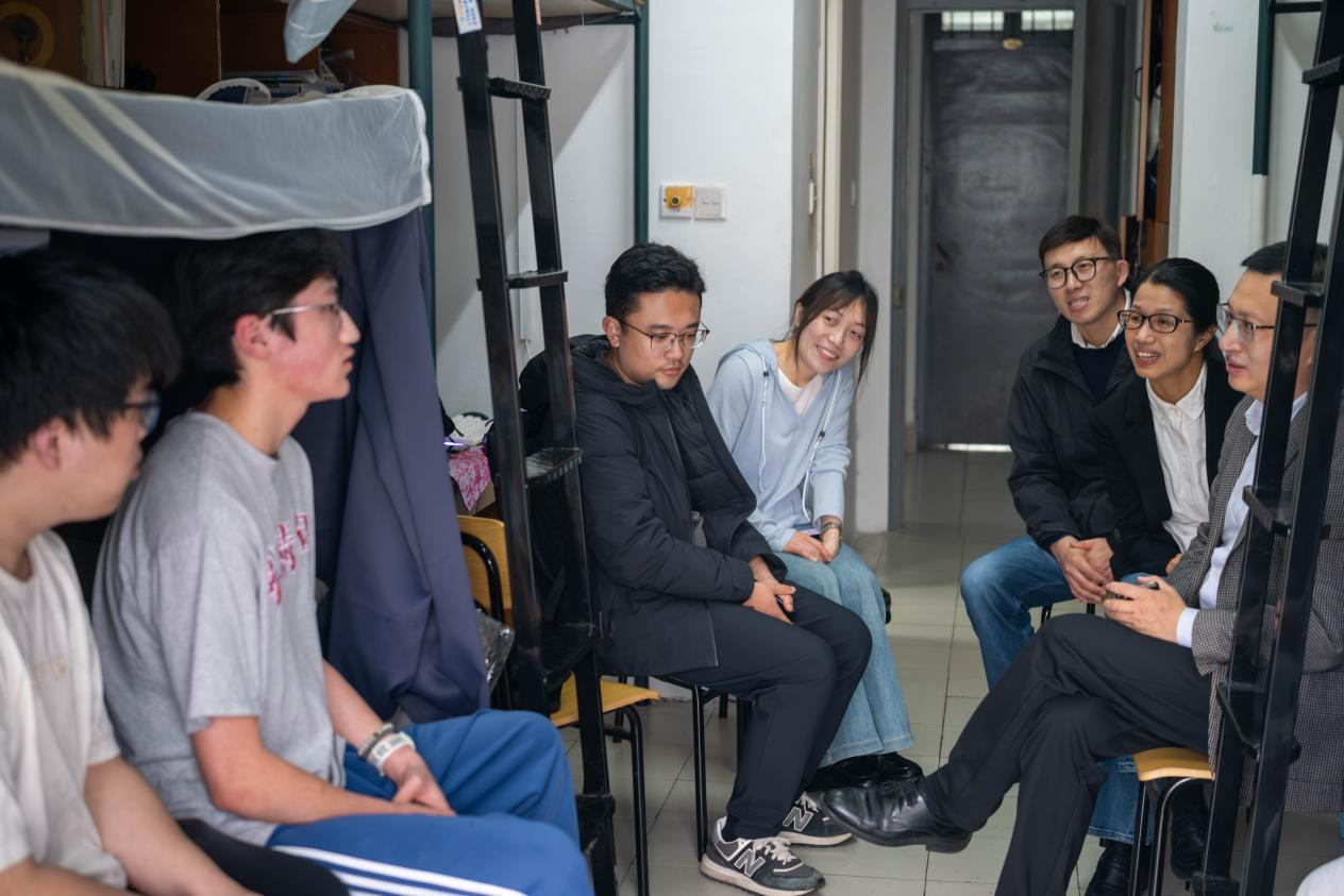 4月16日,学校党委委员、纪委书记吴刚群深入创意设计学院学生寝室,与青年学生面对面交流谈心,倾听学生心声、了解学生实际需求、指引学生成长方向。创意设计学院相关负责人、班主任及辅导员陪同走访。 走访中,吴刚群与同学们围坐交谈,详细询问同学们高中基础知识与大学专业课程的衔接情况,认真倾听大家选择传播与策划专业的初心及未来发展愿景,细致了解专业实践周的教学安排与学生实践收获。 吴刚群聚焦学生实际需求,询问同学们在校期间遇到的难题与困惑,引导大家敞开心扉分享真实感受。学生张洲睿坦言,入学初曾面临学习模式、集体生活适应难题,在学校的细致关怀与贴心服务下,已顺利度过适应期,目前处于学习安心、生活舒心的良好状态。吴刚群听后倍感欣慰,叮嘱随行人员,要精准对接学生需求,持续用有温度、有力度的服务为学生校园学习生活保驾护航。 吴刚群强调,体育锻炼是锤炼意志、增强体质的重要途径,校园文化活动与社会实践是提升综合素养的平台。他勉励同学们立足专业、筑牢根基,在潜心学业的同时,主动走出寝室,积极参与各类活动,努力成长为德智体美劳全面发展的时代新人。