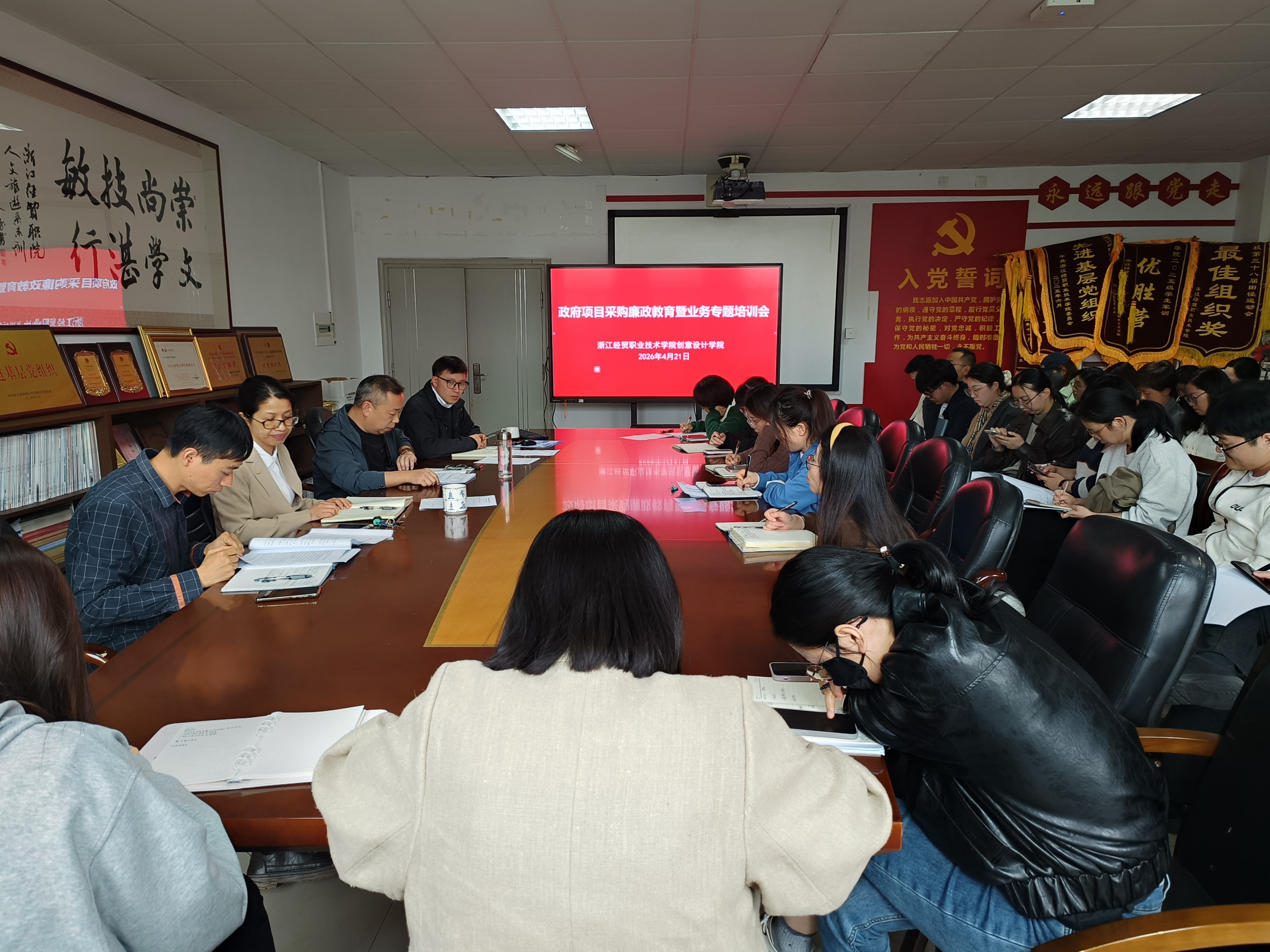 4月21日,创意设计学院召开政府项目采购廉政教育暨业务专题培训会。培训会由学院副院长钱小轮主讲,全体专任教师、实验室管理员参加会议。 钱小轮强调,采购工作需严格遵循《中华人民共和国政府采购法》及其实施条例、《招标投标法》及教育部相关管理规定,要明确纪律红线,严禁拆分项目规避招标、指定品牌、泄露标底等违规行为,结合采购全生命周期强调9个注意点,防范廉政风险,做到“按流程办事,用制度管人”。 钱小轮指出,要明确采购工作流程:一是坚持需求导向,科学编制可行性报告,杜绝“买而不用、用而不佳”;二是提前谋划各环节,倒排工期,防范程序“缩水”;三是做好前期调研论证,项目需经党政联席会议集体决议。 会议还通过剖析近年来高校采购领域违纪违规典型案例,用“身边事”警醒“身边人”,引导相关人员绷紧纪律之弦,严守廉洁底线。